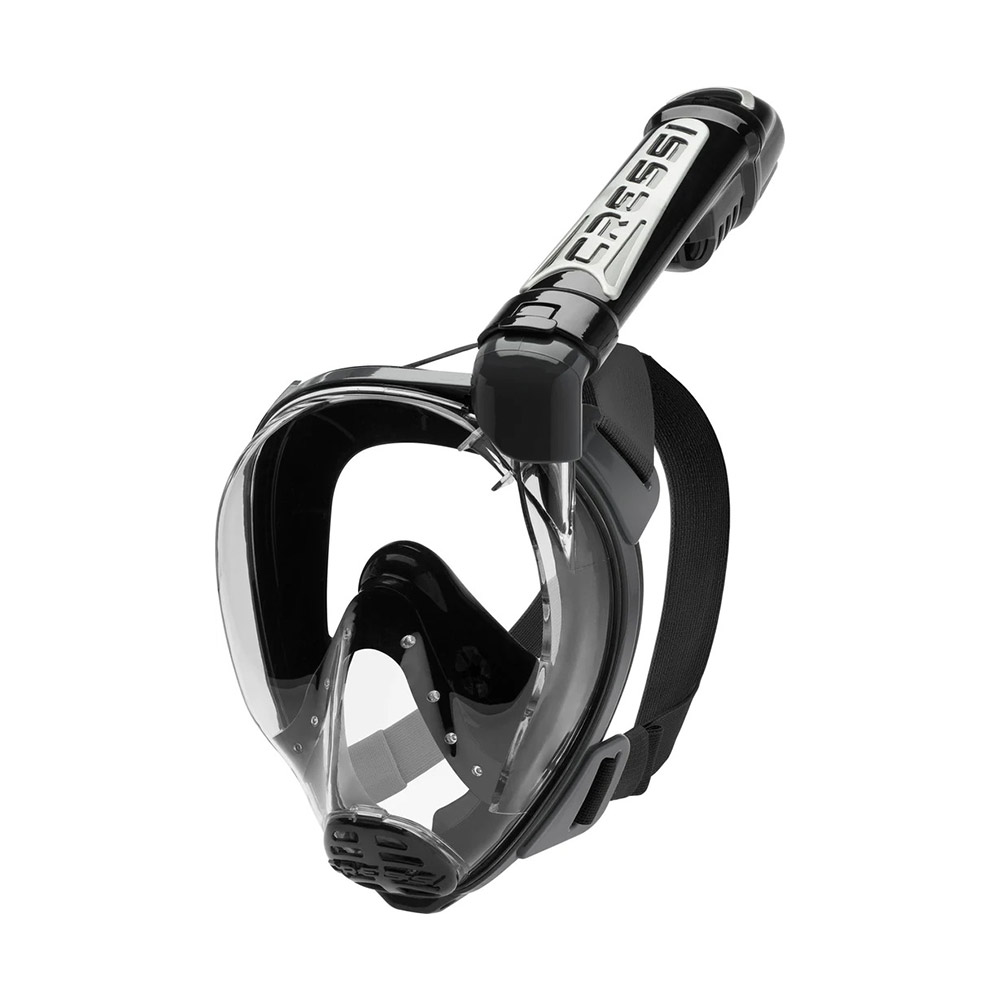 Full face μάσκα της Cressi που σας επιτρέπει να εξερευνήσετε υποβρύχιο κόσμο από την επιφάνεια. Έχει οπτικό πεδίο 30% περισσότερο από τις υπολοιπες της αγοράς. Διαθέτει φούστα προσώπου από μαλακή υποαλλεργική σιλικόνη, πλαίσιο & φακό από πολυανθρακικό και δύο X-Cross ιμάντες κεφαλής για εύκολη προσαρμογή για τέλεια προσαρμογή στο κεφάλι. Η Cressi έχει τον αναπνευστήρα στο πλάι για ευκολότερη αναπνοή και γρηγορότερη διαφυγή του διοξειδίου. Δεν θολώνει. Το μέγεθος S/M είναι για γυναικεία πρόσωπα, ενώ το M/L για αντρικά πρόσωπα.