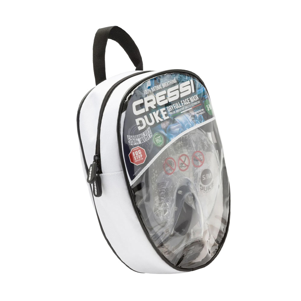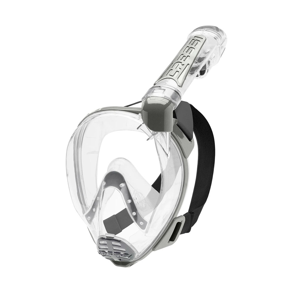 Full face μάσκα της Cressi που σας επιτρέπει να εξερευνήσετε υποβρύχιο κόσμο από την επιφάνεια. Έχει οπτικό πεδίο 30% περισσότερο από τις υπολοιπες της αγοράς. Διαθέτει φούστα προσώπου από μαλακή υποαλλεργική σιλικόνη, πλαίσιο & φακό από πολυανθρακικό και δύο X-Cross ιμάντες κεφαλής για εύκολη προσαρμογή για τέλεια προσαρμογή στο κεφάλι. Η Cressi έχει τον αναπνευστήρα στο πλάι για ευκολότερη αναπνοή και γρηγορότερη διαφυγή του διοξειδίου. Δεν θολώνει.  Το μέγεθος S/M είναι για γυναικεία πρόσωπα, ενώ το M/L για αντρικά πρόσωπα.