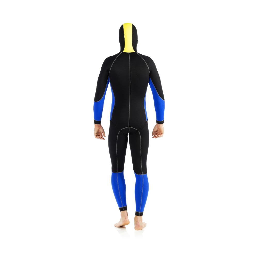 Η στολή αυτή είναι δυο κομμάτια με παντελόνι Long John. Το υλικό είναι ελαστικό neopren νέας γενιάς με nylon jersey για καλύτερη εφαρμογή και ευκολία στο φόρεμα. Το πατρόν είναι προφορμαρισμένο για να μας παρέχει άνεση στις κινήσεις. Ένα γερό φερμουάρ της ΥΚΚ είναι τοποθετημένο μπροστά και συνδυάζεται με ένα ειδικό φύλλο neopren κάτω από το φερμουάρ που δημιουργεί ένα επιπλέον φράγμα ακόμα και για την παραμικρή ποσότητα νερού που μπορεί να περάσει ανάμεσα στα δόντια του φερμουάρ και το υλικό γενικά του φερμουάρ. Αυτό το φύλλο κάτω από το φερμουάρ είναι ελάχιστου πάχους, ώστε να ακουμπά ακόμα καλύτερα στο φερμουάρ και να αυξάνει την άνεση. Το φερμουάρ για να μην μας ενοχλεί στο λαιμό είναι τοποθετημένο στα πλάγια και φτάνει μέχρι το αυτί του δύτη. Εσωτερικά το γιλέκο του παντελονιού είναι λείο για καλύτερη θερμομόνωση και έχει φερμουάρ για μεγαλύτερη ευκολία στο φόρεμα. Το σύστημα των aqua stop της στολής αποτελείται από μαλακά τμήματα neopren 1,5 χιλιοστών τα οποία εσωτερικά είναι λεία και είναι τοποθετημένο στους καρπούς και στους αστραγάλους και γύρω από το πρόσωπο ενώ οι περιοχές στα γόνατα προστατεύονται από τη φθορά και τα τριψίματα από ενισχύσεις με “Powertex”.