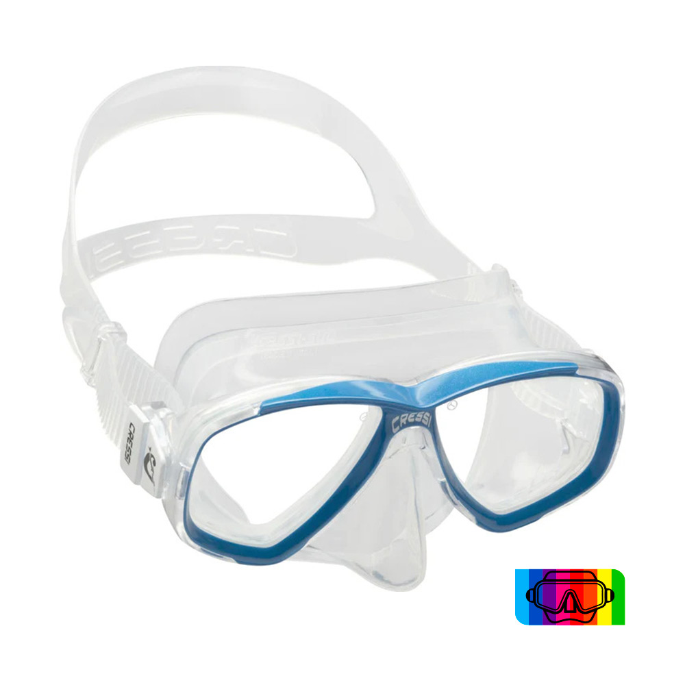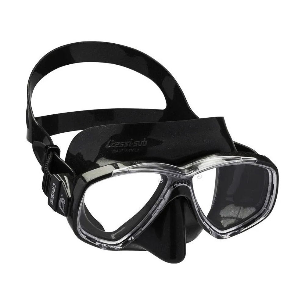 Μάσκα για ελεύθερη κατάδυση, snorkeling αλλά και αυτόνομη κατάδυση. Δυοπτική μάσκα με μέτριο εσωτερικό όγκο. Το υλικό της είναι μαύρη ή λευκή σιλικόνη και έχει δυο απλά αλλά πολύ ανθεκτικά κλιπ ρύθμισης του λουριού