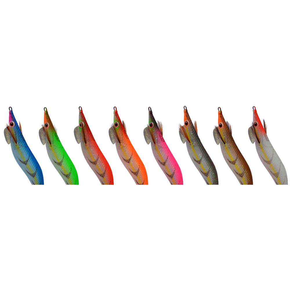 Visibility and shrimp like pattern are two most important characteristics that distinguish this product from others. All other egi characteristics are present such as: redesigned body, double weight, great sinking position, sound effect…