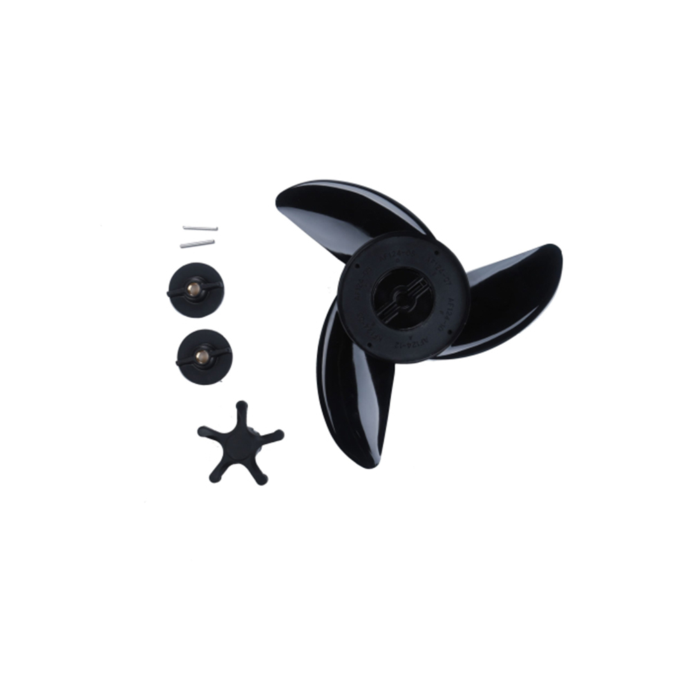 Η συσκευασία περιλαμβάνει ηλεκτρική μηχανή πλώρης, ασύρματο τηλεχειριστήριο, xειριστήριο ποδιού για συνεχείς εναλλαγές ταχύτητας και δύο προπέλες τριών πτερυγίων.