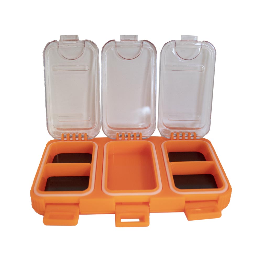 Μικρό μαγνητικό κασετινάκι διπλής όψης από την Oceanic Team. Διαθέτει 6 αυτόνομα διαμερίσματα με μαγνήτη και είναι κατάλληλο για αποθήκευση αγκιστριών, στριφταριων και αλλων μικροαντικειμένων. Διαστάσεις: 100 x 65 x 20mm.