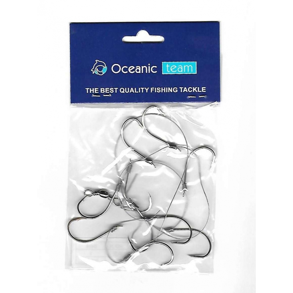 Συρμάτινο πολυάγκιστρο από την Oceanic, ιδανικό για γοφάρια και όπου απαιτείται σύρμα για να αποφύγουμε τα αιχμηρά δόντια των αρπαχτικών. Είναι διαθέσιμο σε μεγέθη αγκιστριών 1, 2, 3, 4, 5, 6 & 7 και με nickel αγκίστρι.
