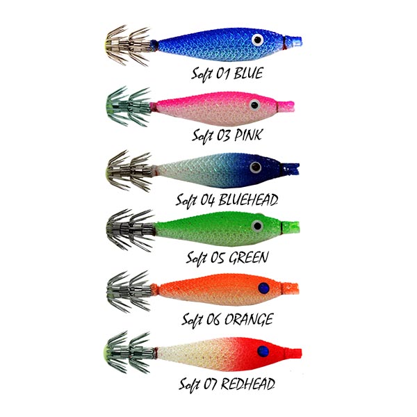 Οι καλαμαριέρες Soft είναι μικρού μεγέθους (70mm) και κατάλληλες για το ψάρεμα καλαμαριών από το σκάφος. Διαθέτουν πολύ καλό πυκνό ύφασμα, δυνατά διπλά γκίνια και το καλύτερο… φωσφορίζουν όλες. Θα τις βρείτε σε έξι πολύ ενδιαφέροντες χρωματισμούς.