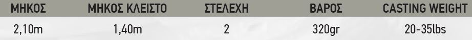 Το Grouper της Oceanic, είναι ένα ειδικά σχεδιασμένο καλάμι για την τεχνική του μολύβι φύλακα αλλά και της βαθιάς ζόκας και… συναρπάζει με τις αποδόσεις του! Το Grouper φαίνεται να μην έχει κανένα περιορισμό στο μέγεθος του αντιπάλου! Αυτό το καλάμι με τα πλέον ποιοτικά περιφερειακά του (fuji sic guides) αλλά και τον κορυφαίο άνθρακα High modulus carbon στο εσωτερικό του, το κάνει εξαιρετικά δυνατό και ελαφρύ ταυτόχρονα! Μπορεί να δουλέψει άνετα κοντοφύλακες μέχρι 250gr… Διατίθεται μαζί με σκληρή θήκη μεταφοράς!