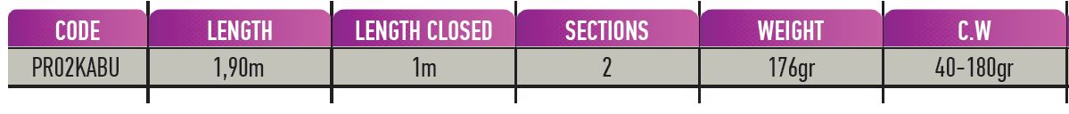 To Kaburaba είναι ένα εξειδικευμένο καλάμι για φαγκρία δηλαδή για την τεχνική του kabura (μήκος 1,9m & c.w. 40-180gr) αλλά μπορεί να χρησιμοποιηθεί και για σιλικόνες! Χάρη στην Glass μύτη, αναγνωρίζει απόλυτα κάθε τσιμπιά και σας δίνει απόλυτο πλεονέκτημα απέναντι σε άλλα καλάμια. Το Kaburaba επιτρέπει την χρήση νημάτων τόσο λεπτών όσο το PE # 1.0. Κάποιοι το χρησιμοποίησαν και για καθετή με εκπληκτικά αποτελέσματα χάρη στην μεγάλη ευαισθησία μύτης που αναγνωρίζει ακόμα και τα πιο αμυδρά τσιμπήματα. Ένα απίστευτο καλάμι προηγμένης τεχνολογίας με όλα τα περιφερειακά του fuji που θα σας προσφέρει την δυνατότητα να πειραματιστείτε σε όσες τεχνικές χρειαζόμαστε την αίσθηση του τσιμπήματος σε μεγάλα βάθη!
