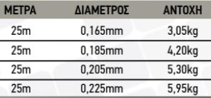 Αγωνιστική πετονιά “made in Japan” σε μικρές διαμέτρους ιδανική για Match & LRF ψαρεματα. Με επικάλυψη Fluorocarbon η οποία την κάνει πρακτικά αόρατη, πολύ ανθεκτική στο αλάτι και τον ήλιο, ακόμα και μετά απο πολλά ψαρέματα. Σε διάφανο χρώμα και συσκευασία των 25 μέτρων.