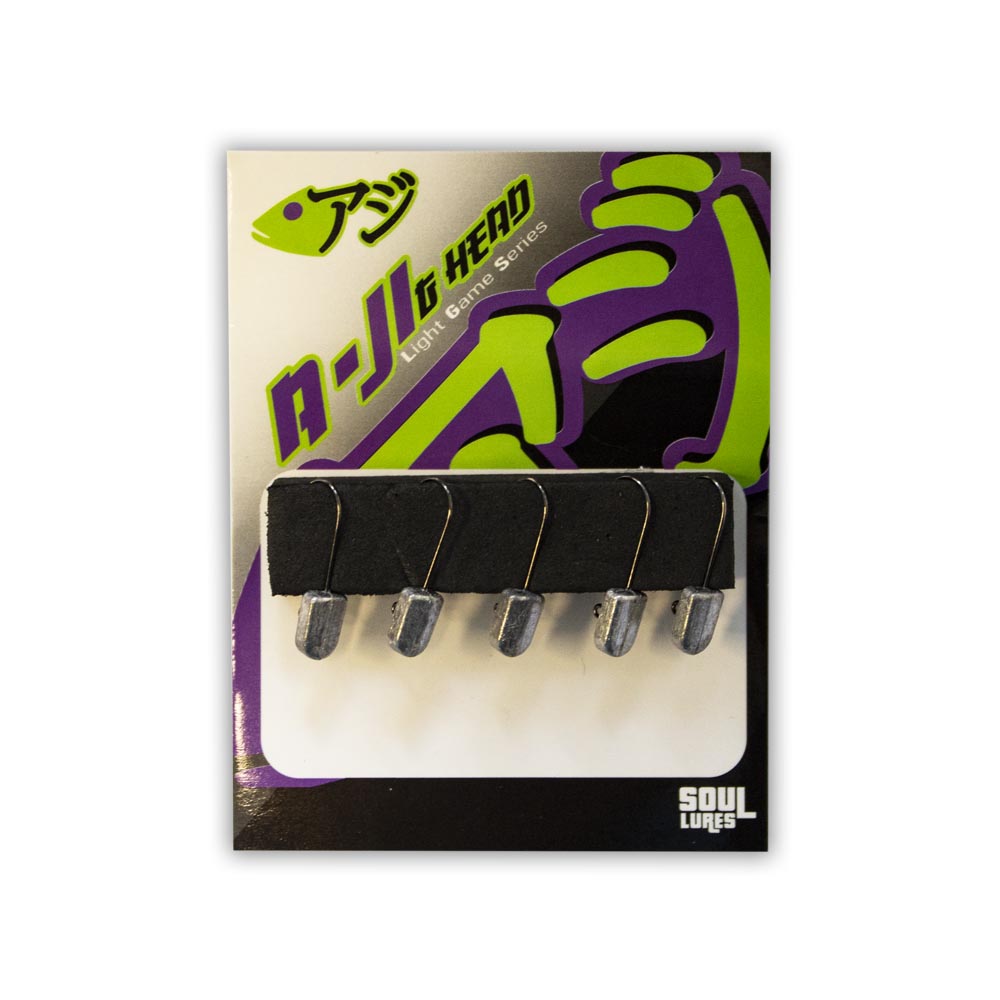 To Aji G-Head είναι μια σειρά από μικρές μολυβοκεφαλές για το LRF & Spinning που μπορούν να “παντρευτούν” με πλειάδα διαφορετικών σχημάτων σιλικόνων και βιοδιασπώμενων αλλά κυρίως με τις σιλικόνες της Soul Lures : Bass Shad, Mini Worm, Aji Strike, Kurodai & Mebaru. Η ποικιλία τους δε σε μεγέθη καλύπτουν όλες τις ανάγκες, από τις πολύ μικρές σιλικόνες των τριών εκατοστών έως και δέκα εκατοστά. Τα αγκίστρια των μολυβοκεφαλών είναι πραγματικά πολύ αιχμηρά ώστε να καρφώνουν άμεσα ακόμα και τα σκληρά στόματα των σπαριδών (π.χ. τσιπούρες) και σε τέτοια μεγέθη που ταιριάζουν απόλυτα στο σώμα της σιλικόνης.