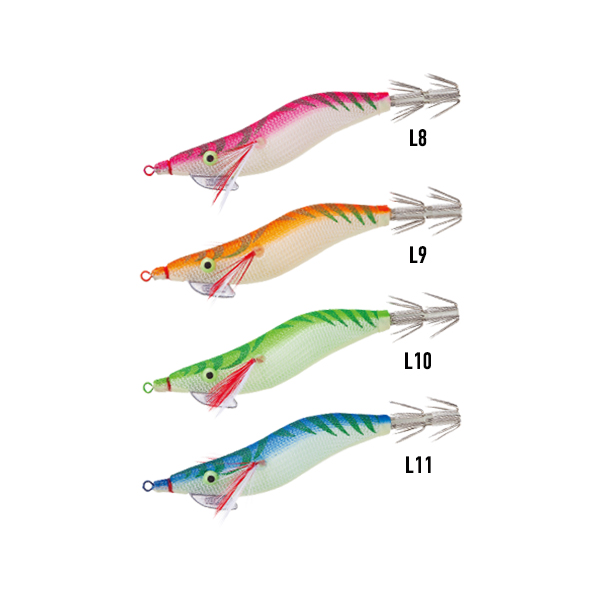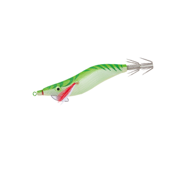 Καλαμαριέρα γαρίδα σε μικρό μέγεθος με στριφτάρι Original Rolling Shaft, παγκόσμια πατέντα της Yo-zuri  και μολύβι Original Snag-Less Sinker που αποτρέπει τα μπερδέματα. Έχει μάτια Glow, σώμα Glow και φυσικά τις πολύ κοφτερές βελόνες Original Trick Hooks.